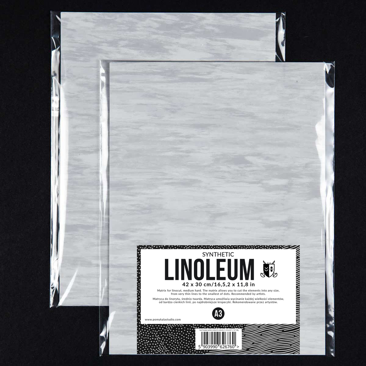 Średnio twarde o gładkiej, równej powierzchni i jednolitej strukturze. Linoleum posiada dużą elastyczność jest odporne na złamania. Trwałość materiału umożliwia wielokrotne drukowanie bez straty jakości. Podczas wycinania nie kruszy się, umożliwia czyste, równe i ostre cięcia.